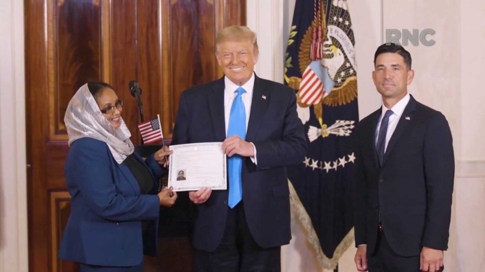 The second portion, coming about an hour and a half into the event, saw Trump overseeing a naturalisation ceremony conducted by acting Secretary of Homeland Security Chad Wolf.
