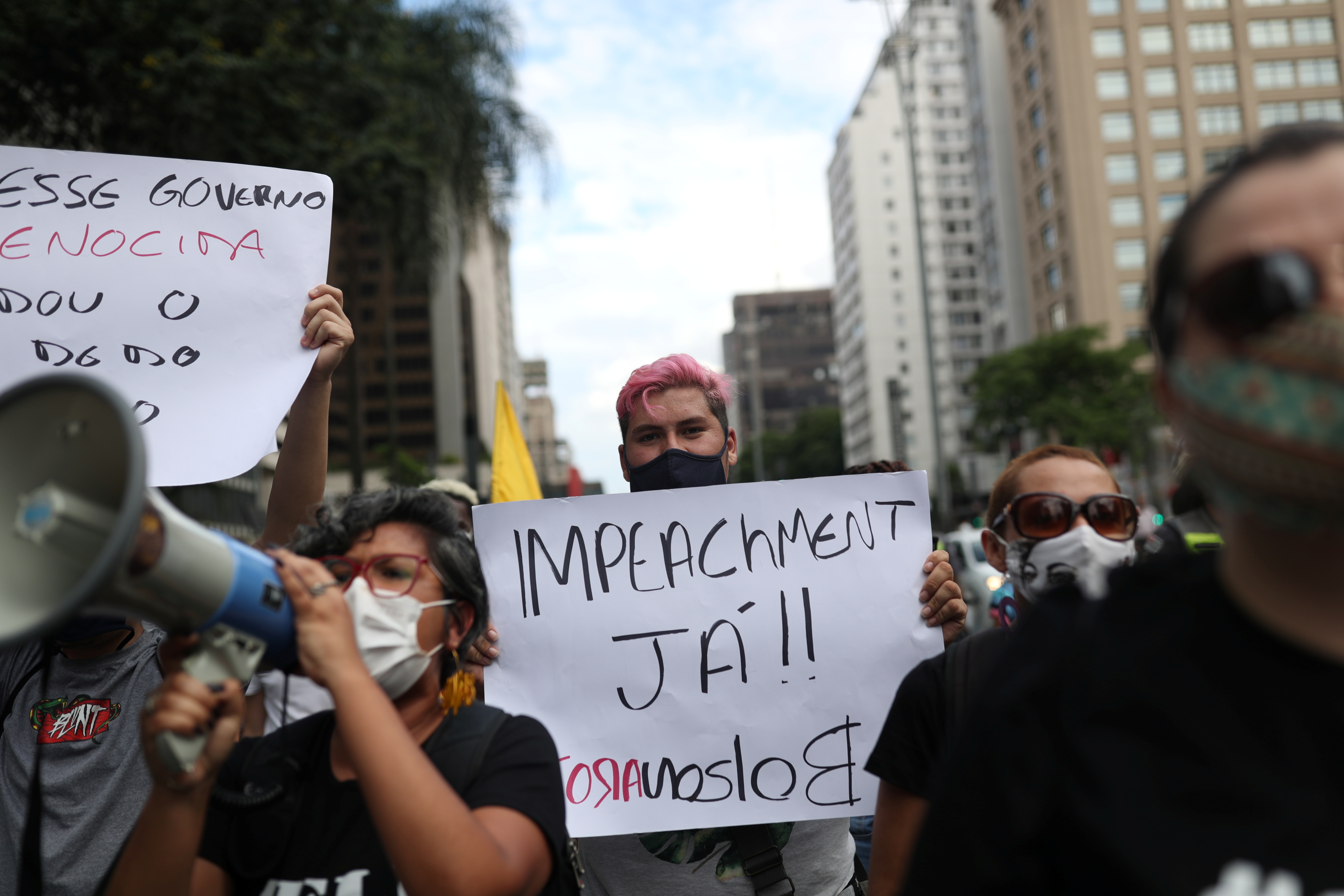 Two hundred people protested on Sunday in Brasilia, the capital, holding signs and banners reading, “Bolsonaro Out” and “Impeachment Now”, while a procession of cars honked their horns in support. Other demonstrations were also held in Sao Paulo and Rio de Janeiro.