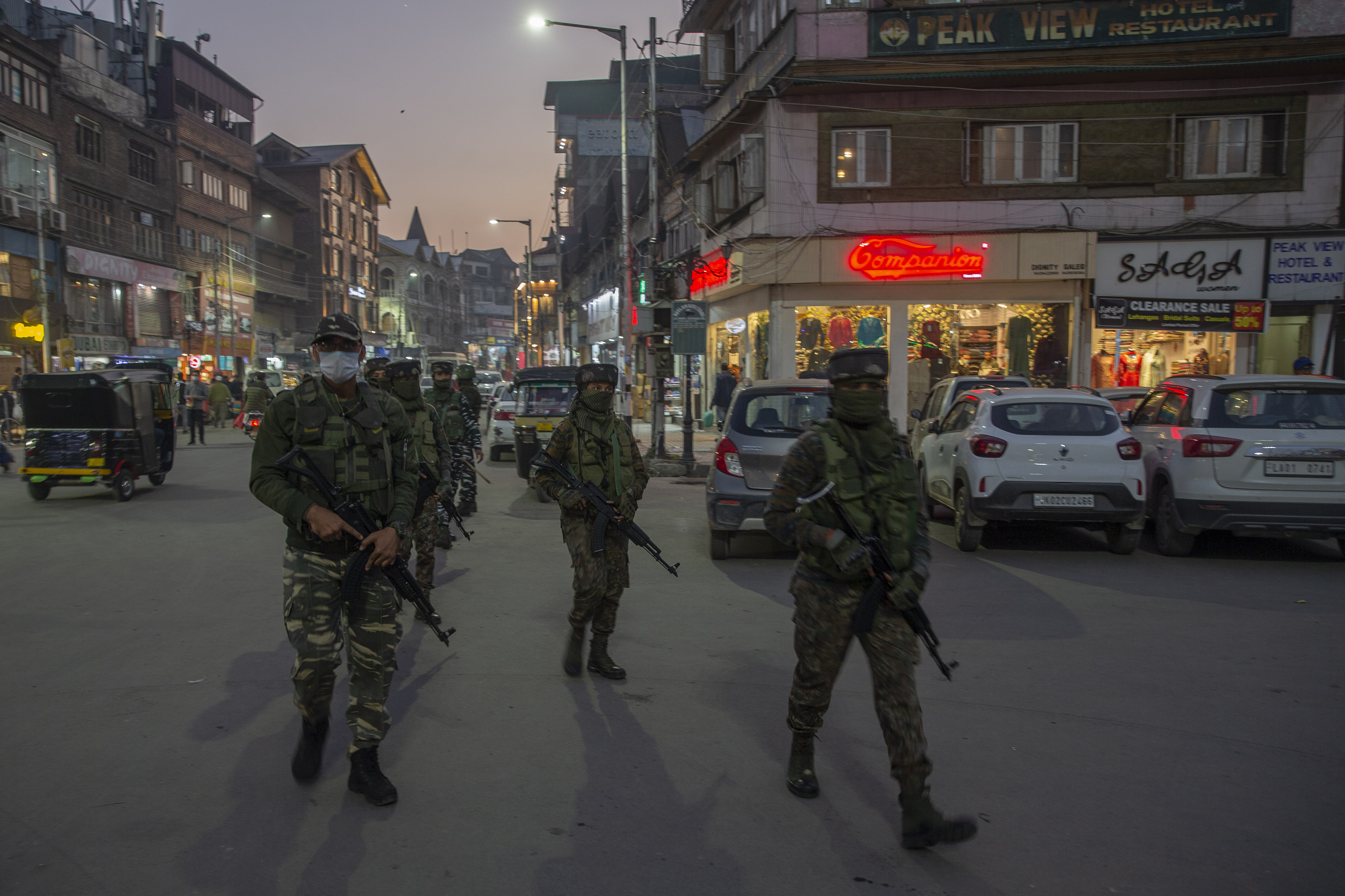 Indian paramilitary soldiers patrol during an operation in Srinagar, Indian-administered Kashmir [File: Dar Yasin/AP Photo]