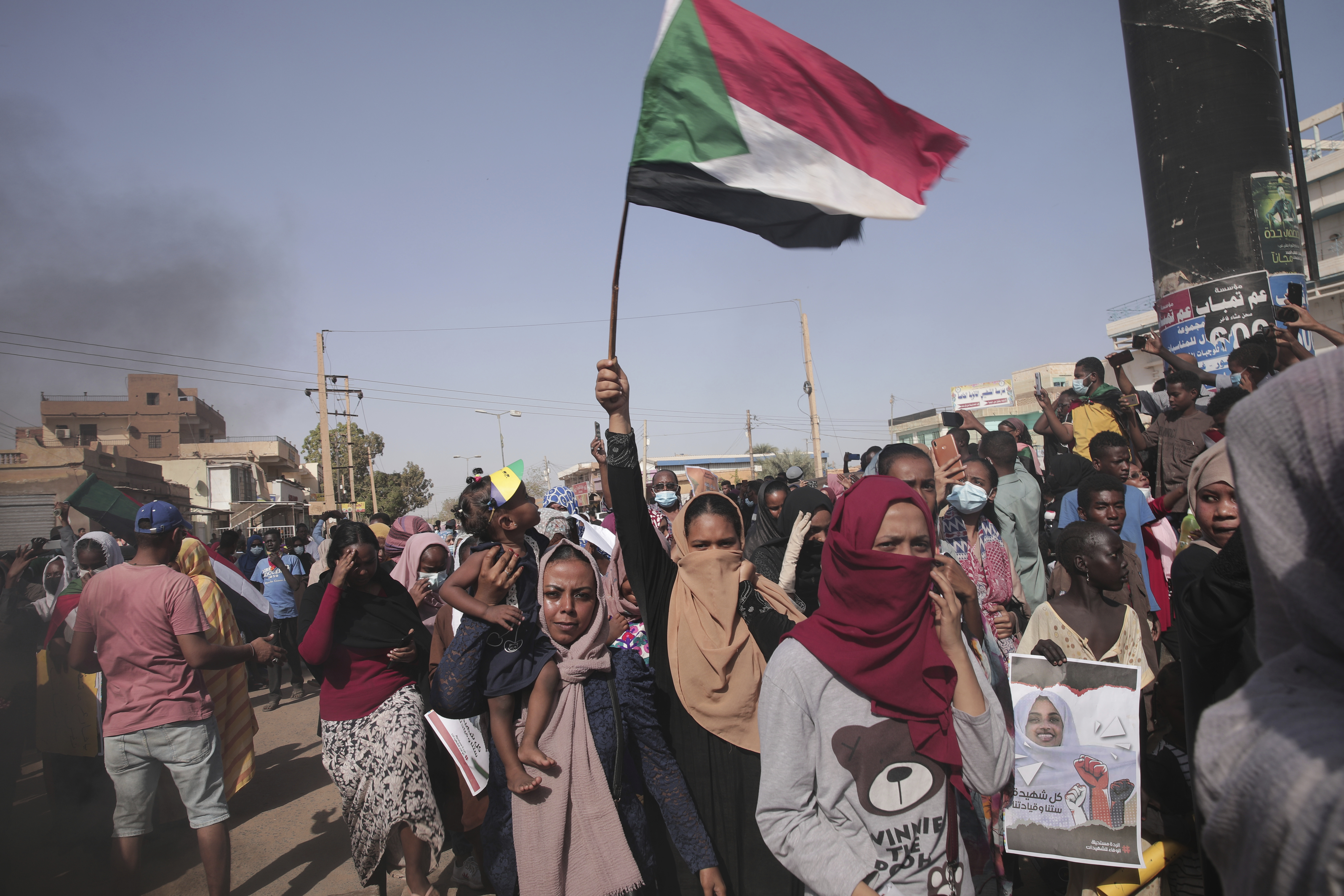 Protesters in Khartoum waved Sudanese flags and chanted “civilian is the people’s choice” as well as “the people are stronger.”