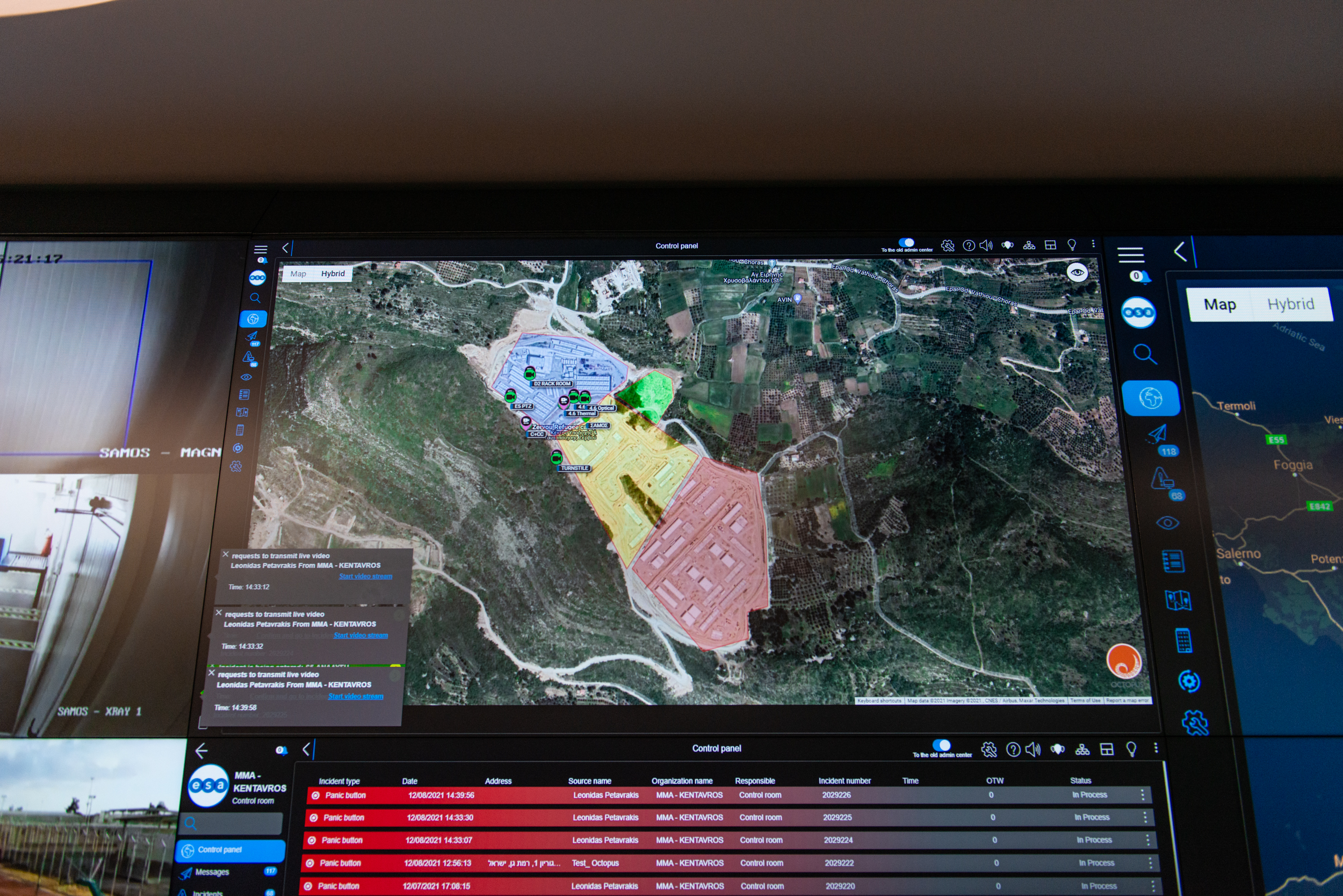 From the control room, operators deploy camera-equipped drones and instruct officers stationed at the camp to rush to the location of the reported threat.