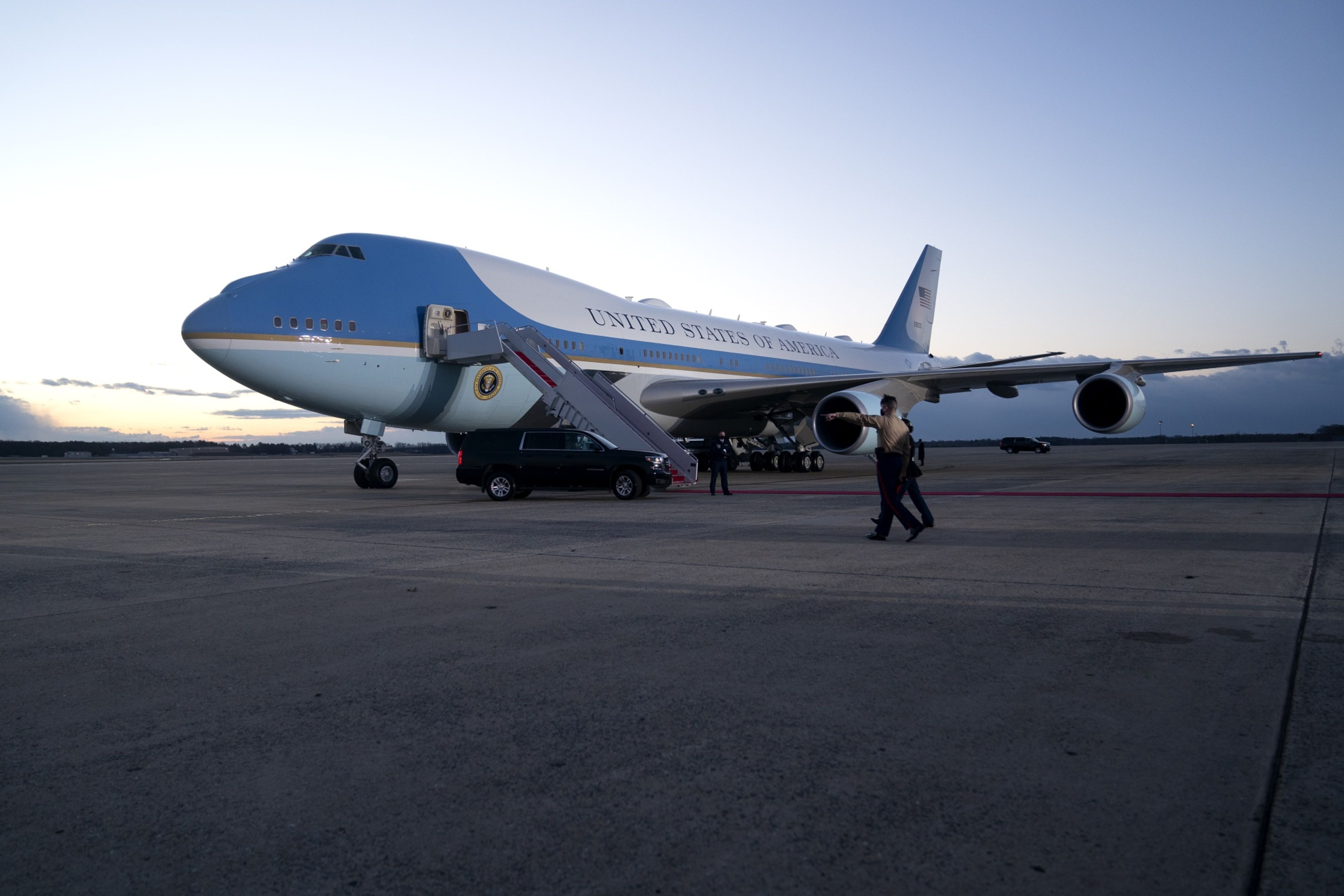 Air Force One sits on the tarmac at Joint Base Andrews, Maryland, on Wednesday, January 20, 2021 [Stefani Reynolds/Bloomberg]