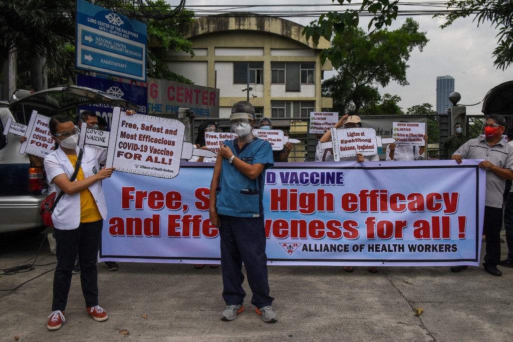 The government only started vaccinating the first health workers with 600,000 doses of Sinovac donated by China on March 1. Three days later, the Philippines received an initial shipment of about 500,000 doses of AstraZeneca and Oxford University’s COVID-19 vaccine under the WHO-backed COVAX facility.