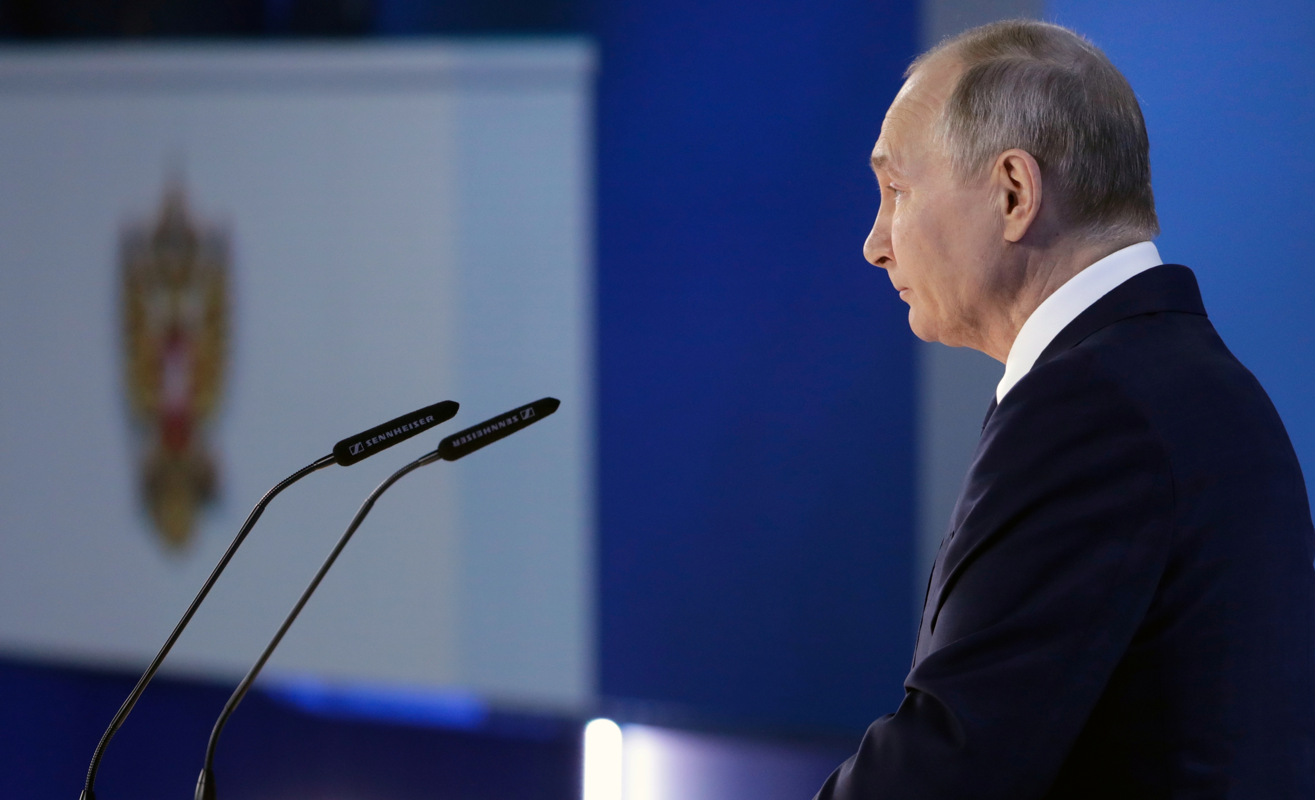 Russian president’s comments in annual state-of-the-nation address come as tensions with the West plunge to post-Cold War lows.