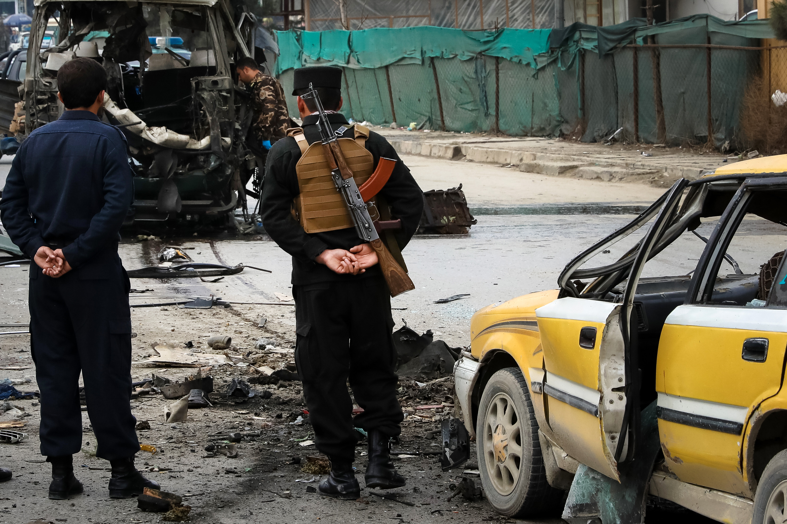 Afghan security officials inspect the scene of a bomb blast in Kabul, Afghanistan [File: Hedayatullah Amid/EPA]