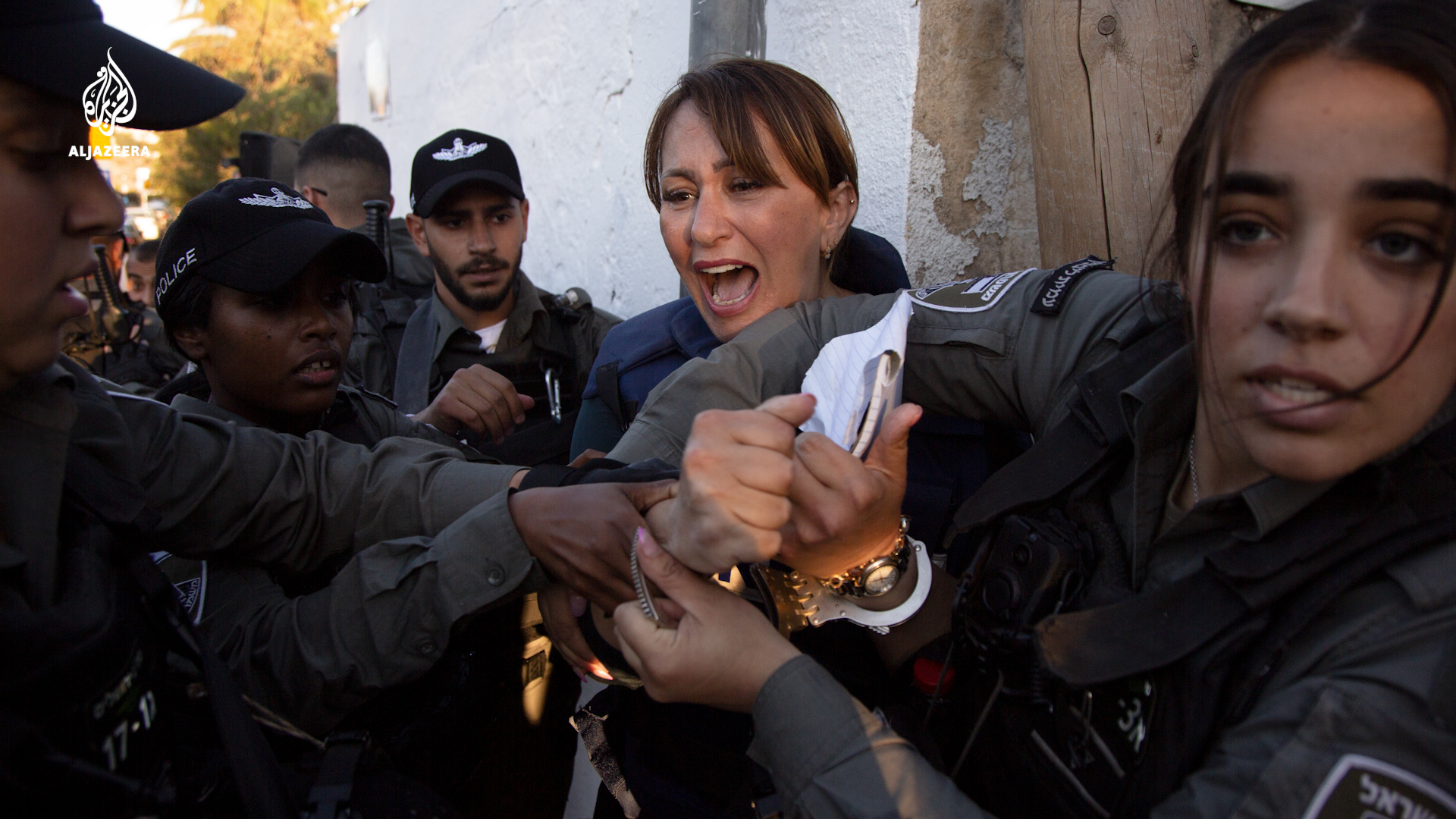 Al Jazeera Arabic veteran journalist Givara Budeiri sustained a fractured hand while being violently arrested in Sheikh Jarrah, occupied East Jerusalem.