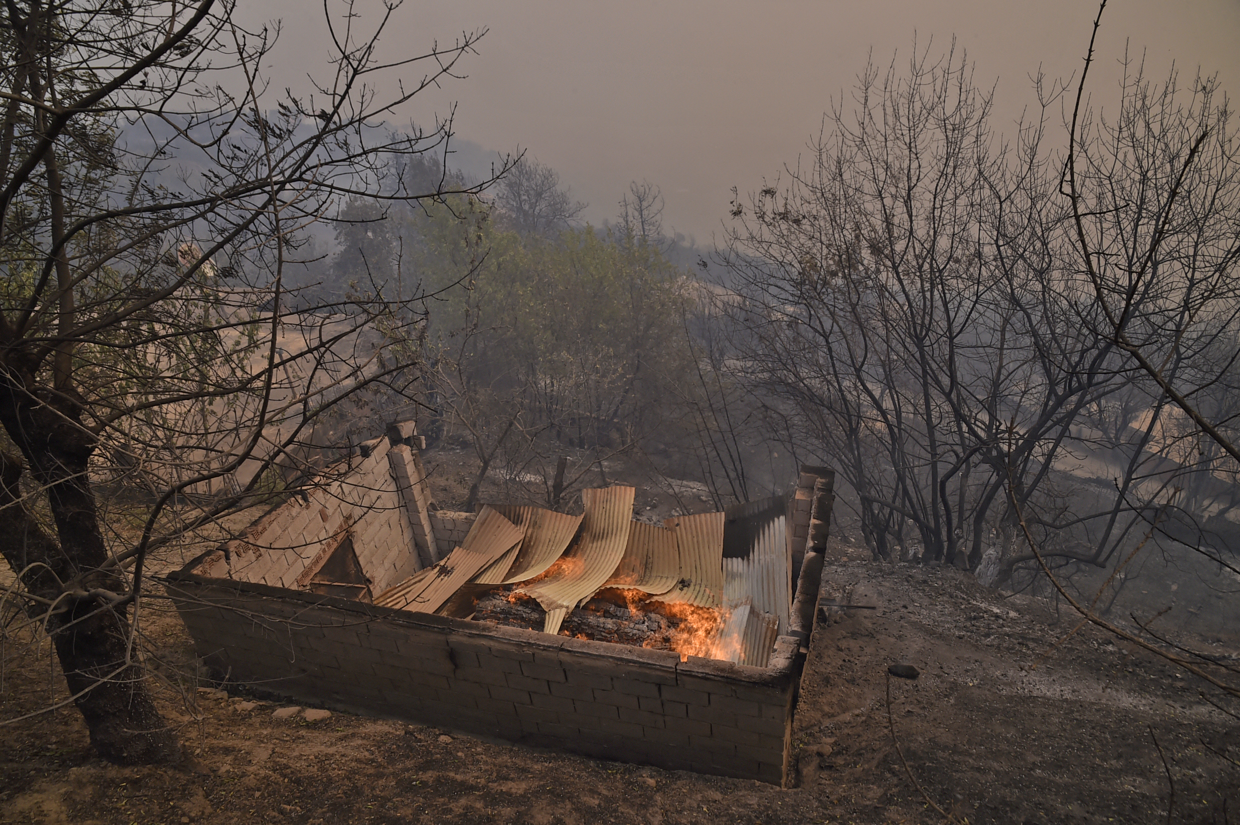 Multiple fires were burning through forests and devouring olive trees and livestock that provide the livelihoods of families in the Kabyle region.