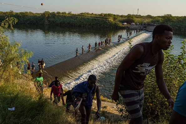 Haitian migrants cross the Rio Grande to reach Del Rio, Texas [File: Paul Ratje/AFP via Getty Images]
