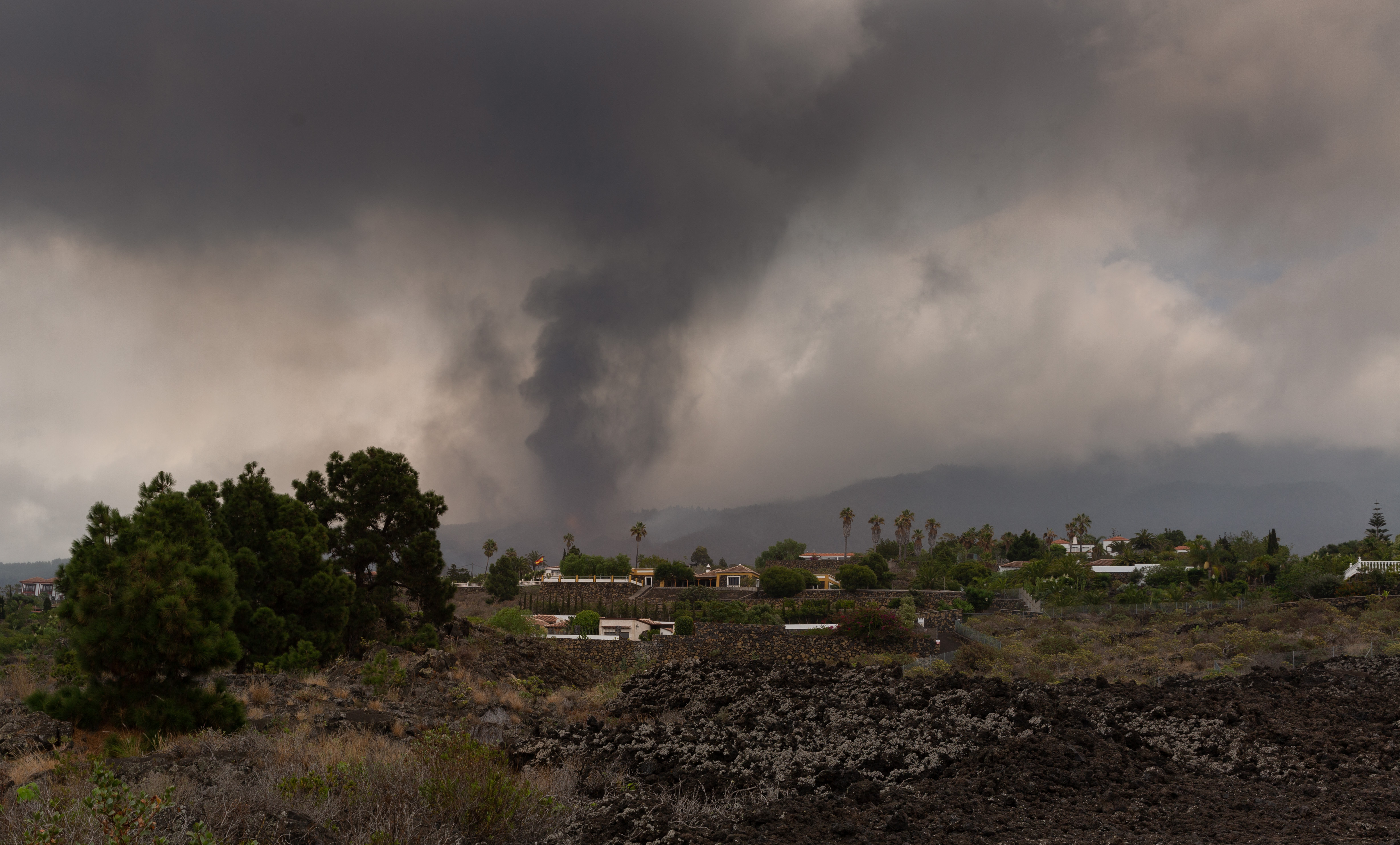 The volcano straddles a southern ridge in La Palma, one of seven islands that make up the Atlantic archipelago which lies off the coast of Morocco.