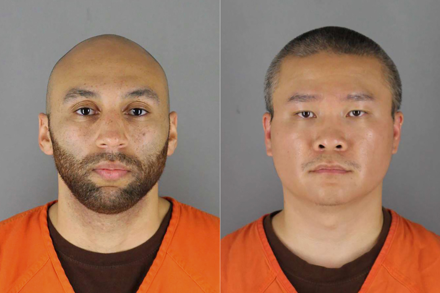 The jury found that J Alexander Kueng, 28, left, and Tou Thao, 36, right, had deprived George Floyd of medical care and failed to help as their colleague Derek Chauvin knelt on Floyd's neck with his knee [File: Hennepin County Sheriff's Office via AP]