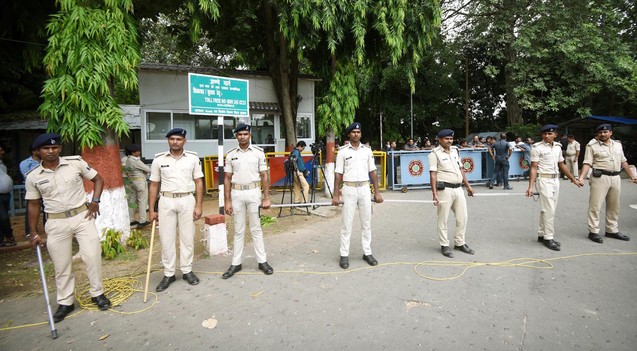 PATNA, INDIA - AUGUST 9: Police personnel deployed poutside Chief Minister Nitish Kumar's residence on August 9, 2022 in Patna, India.