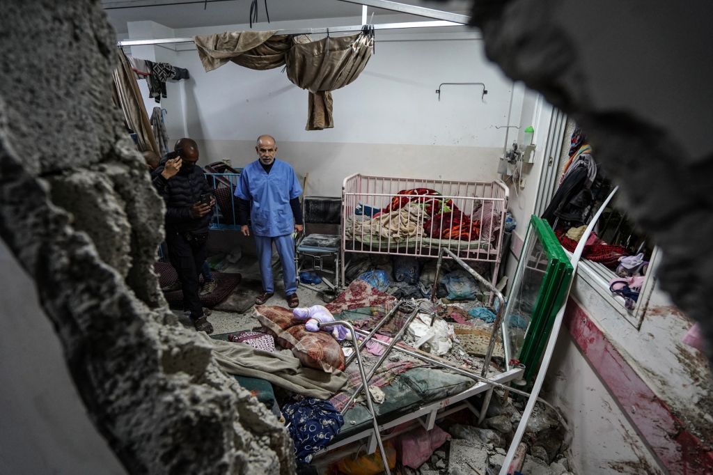 A view of damage after Israeli army hit the pediatric department of Nasser Hospital in Gaza's Khan Younis city on December 17, 2023.