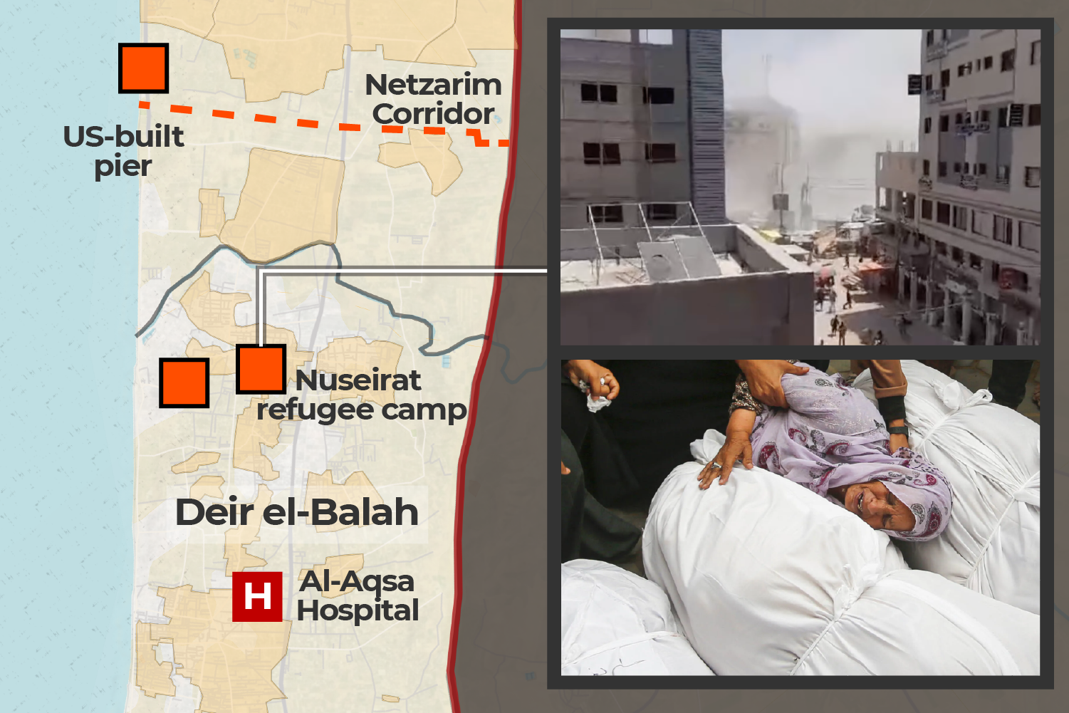 The wounded were taken to Al-Aqsa Martyrs Hospital in Deir el-Balah, an already overwhelmed facility.