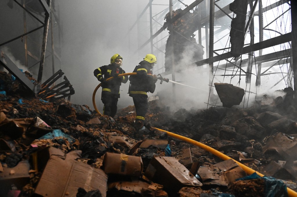 ![Ukrainian rescuers work to extinguish a fire in a food warehouse following a drone attack in Kharkiv on April 14, 2025 [Sergey Bobok/AFP]](https://aljazeeranews-3fuh52rgrl.edgeone.app/wp-content/uploads/2025/04/000_429F8GD-1744639897.jpg?resize=770%2C513&quality=80)