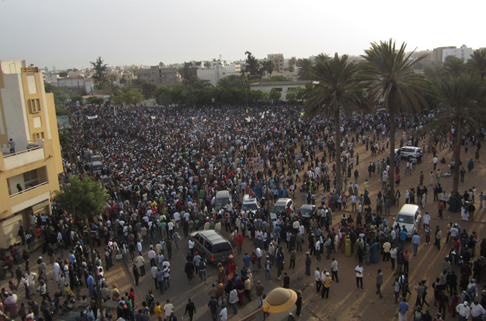 Thousands of people gathered, held up signs and chanted slogans in protest against the decision taken by the country’s top legal body to allow President Wade’s candidacy in next month’s election.