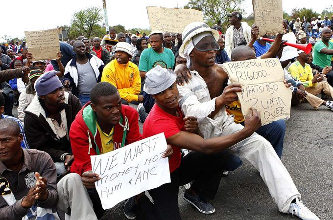 Lonmin miners have been protesting for weeks over pay, sparking a crackdown that killed 34 miners [Reuters]