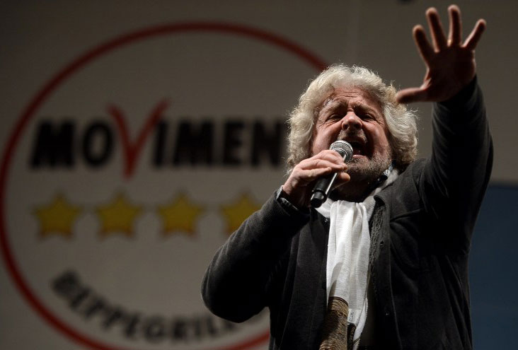 Comedian-turned-politican Beppe Grillo, the 64-year-old leader of the protest Five Star Movement party, has grabbed headlines and tapped into a national mood of disenchantment, calling for established parties to “get out” at a rally in Rome attended by about half a million people.