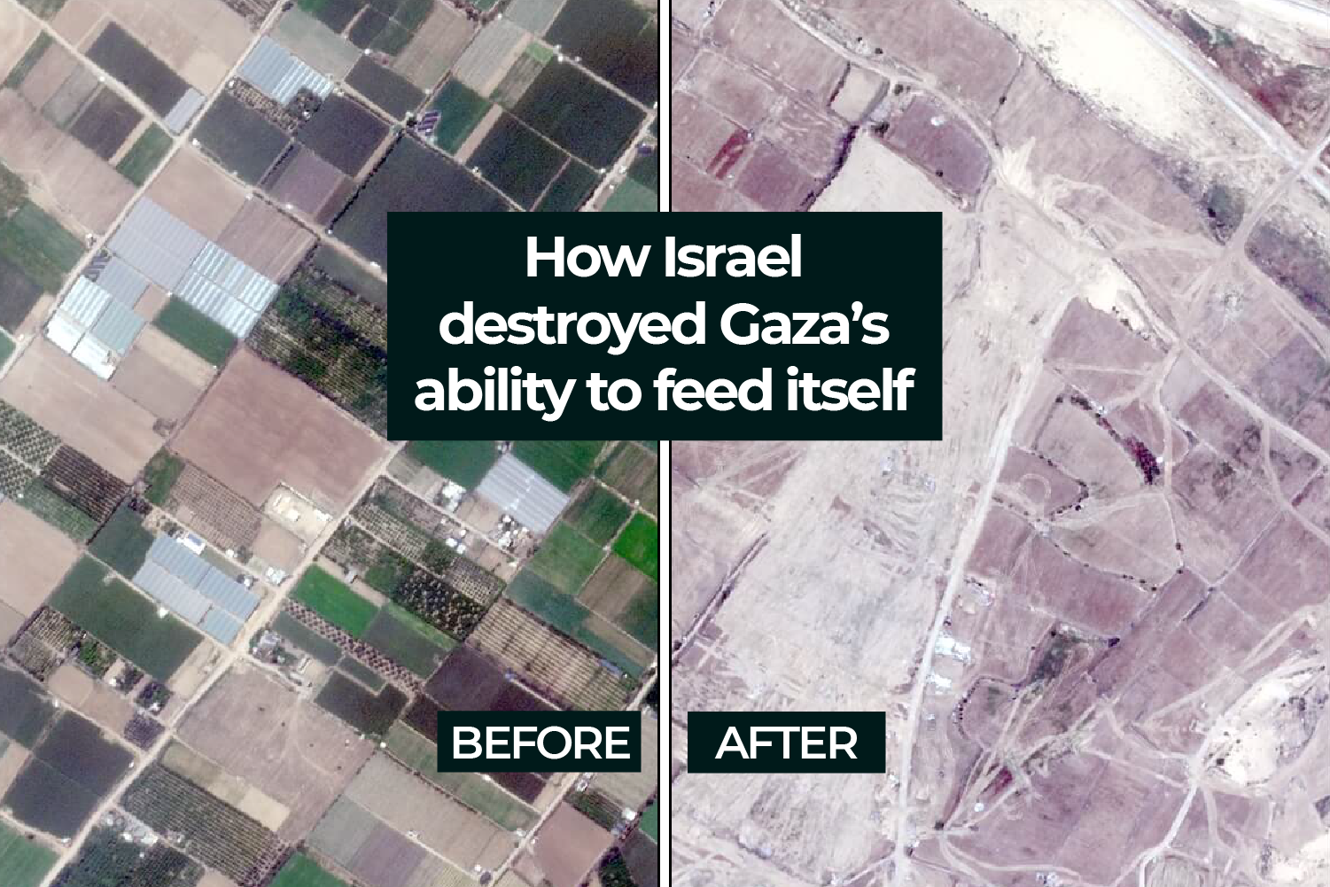 Satellite images analysed by Al Jazeera's digital investigation team, Sanad show that more than half (60 percent) of Gaza's farmland, crucial for feeding the war-ravaged territory’s hungry population, has been damaged or destroyed by Israeli attacks.