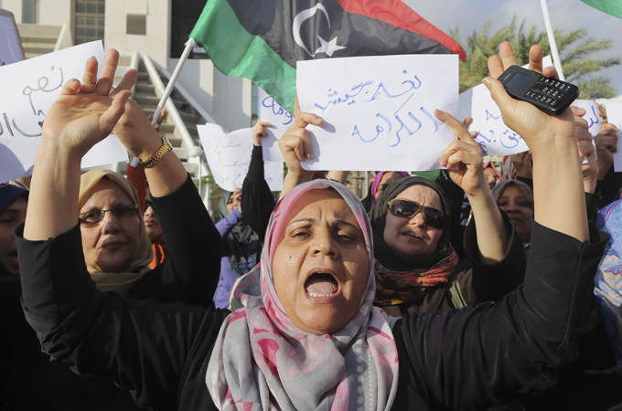 Local media footage showed protesters in Tripoli destroying a coffin on which they had written “Ansar al-Sharia,” the name of an al-Qaeda-inspired armed group, and Ahmed Maiteg, the name of the newly appointed prime minister.