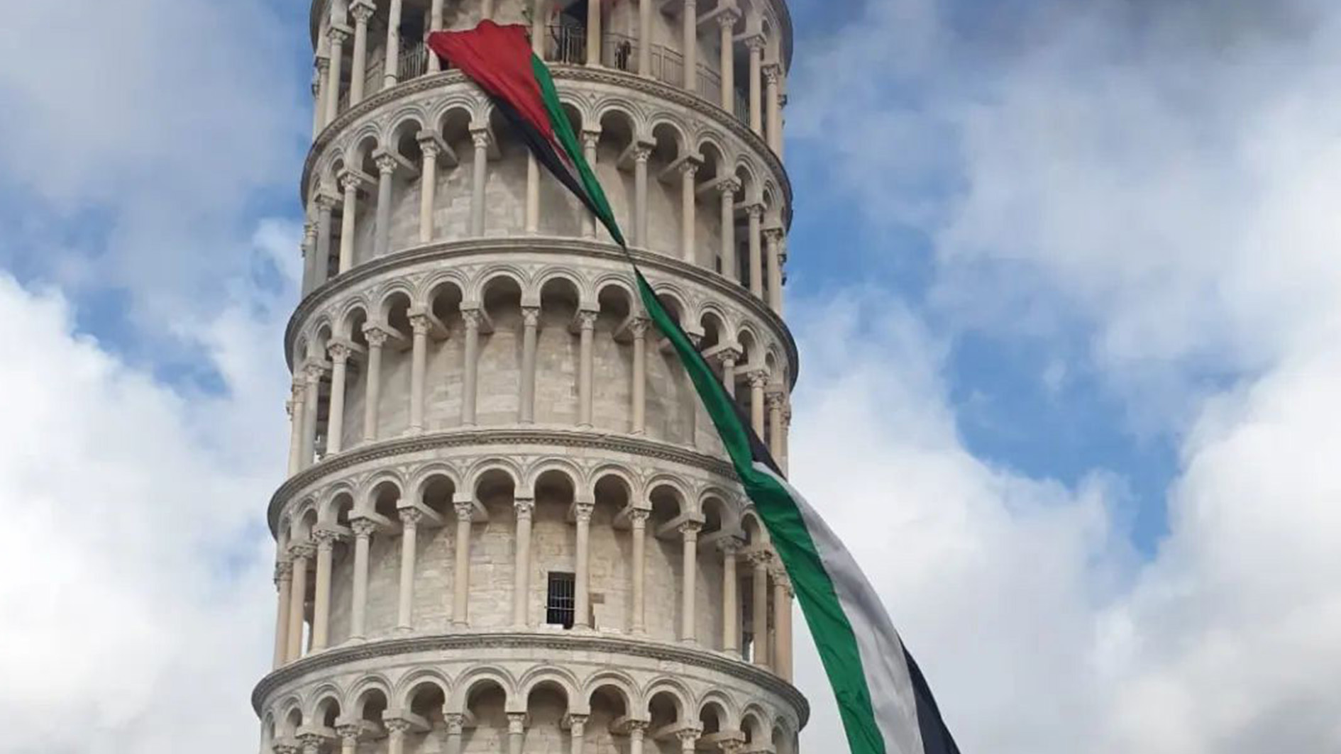 Palestinian flag hung from Leaning Tower of Pisa