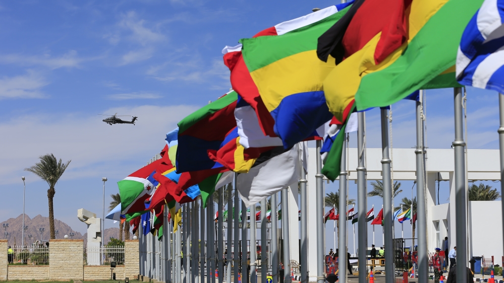 The three-day event is being hosted by Egyptian president and former military chief Abdel Fattah el-Sisi at the Red Sea resort of Sharm el-Sheikh.