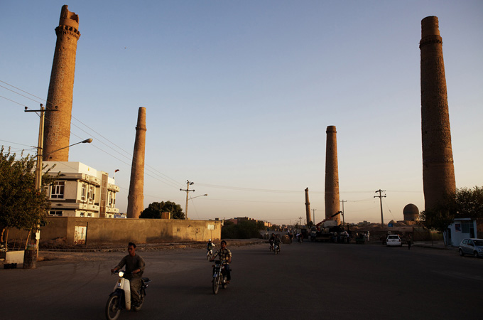 | A general view of the five remaining 15th century minarets of the Musalla Complex in Herat [John D McHugh/Al Jazeera] |