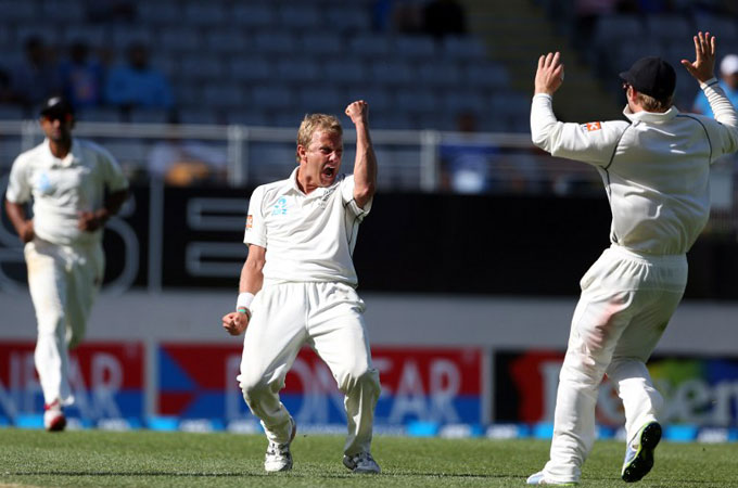 Neil Wagner captured four wickets at crucial times as New Zealand held off a counter-attacking India to win the first test at Eden Park by 40 runs after tea on the fourth day.
