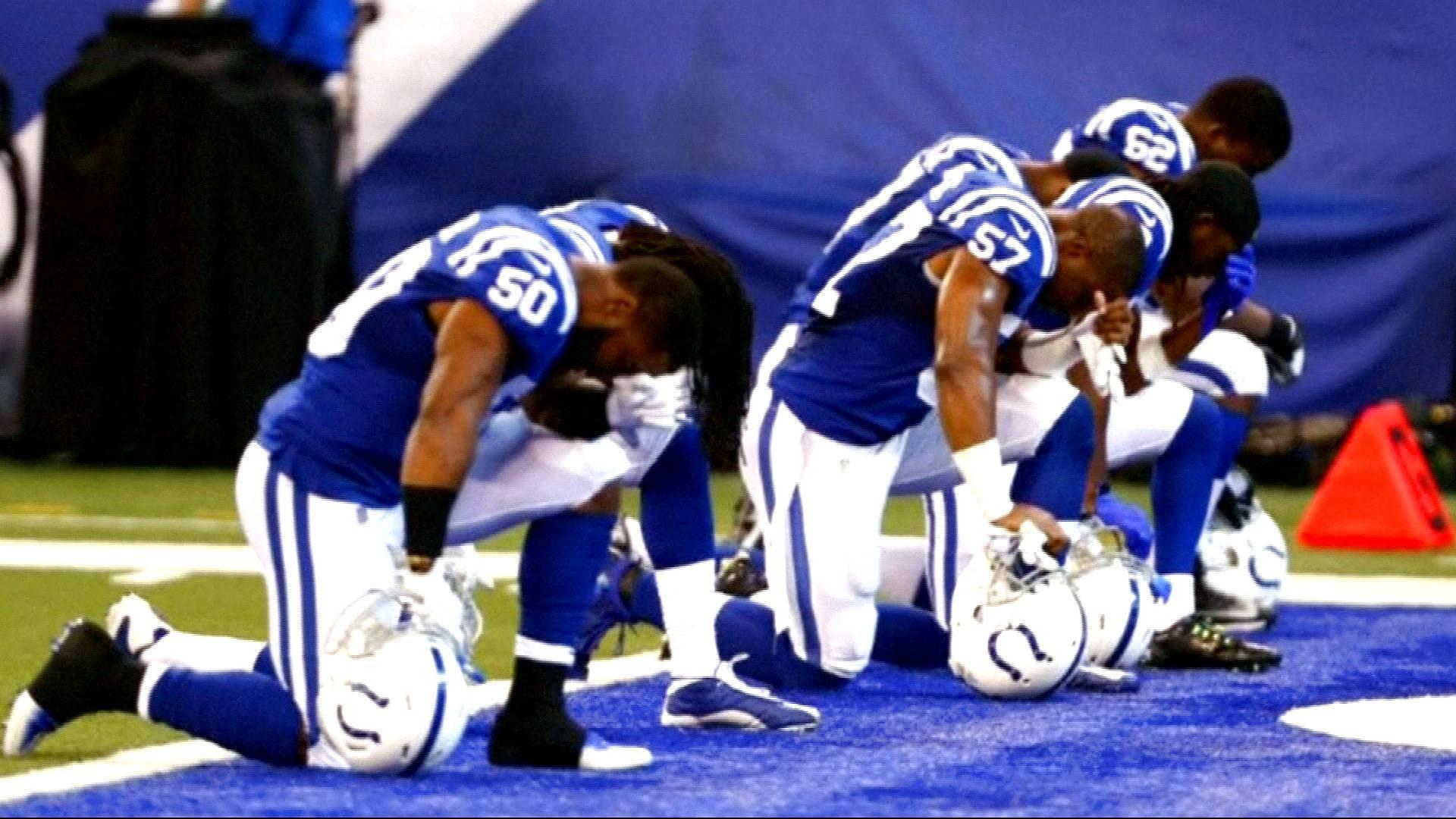 The kneeling has been a symbol of protest against racial injustice in the United States. Pence accused the players of disrespecting the national anthem but the VP has been accused of staging a political stunt against the players.