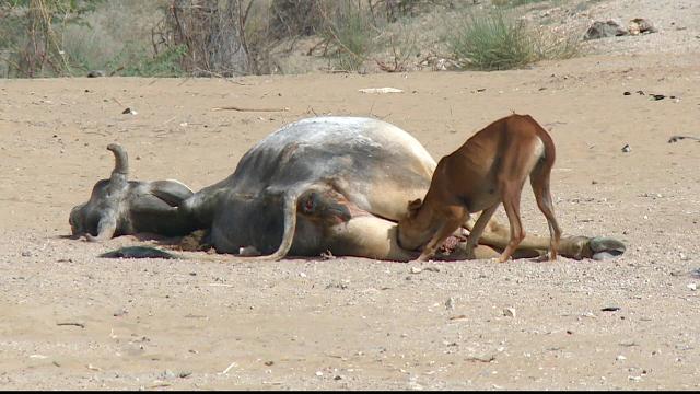 Cattle are dying because of the lack of grass for grazing.