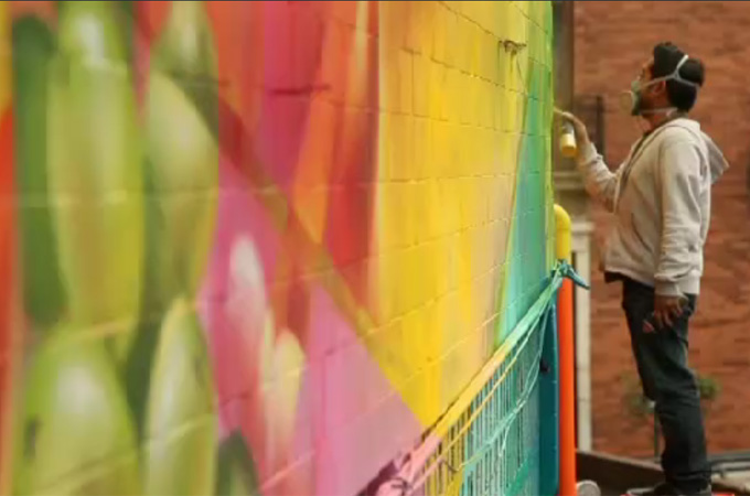 Graffiti artists paint works that comment on current issues in the country, like drug violence and social problems.