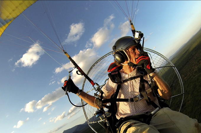 But when he is not tending to the needs of the birds in his sanctuary, Wheeler is up in the sky with an eagle eye scouring for illegal poaching activities. From his small paraglider, he works with local rangers to identify poaching threats from the air, relaying locations and information back down to the rangers on the ground.