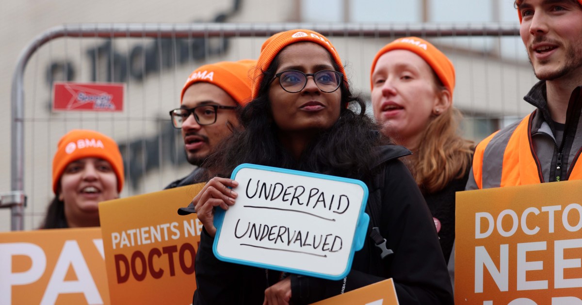 ![Resident doctors strike outside St. Thomas' Hospital in London, Britain, 17 December 2025. Resident doctors have begun a five-day strike over pay and conditions ahead of the festive period. [Andy Rain/EPA]](https://aljazeeranews-3fuh52rgrl.edgeone.app/wp-content/uploads/2025/12/13587707_cropped-1765996208.jpg?resize=730%2C410&quality=80)