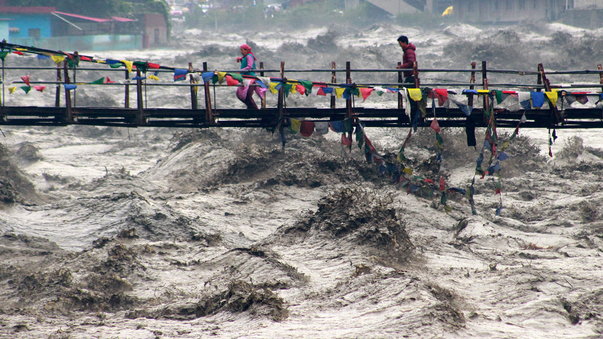 Building collapses into overflowing river during India floods